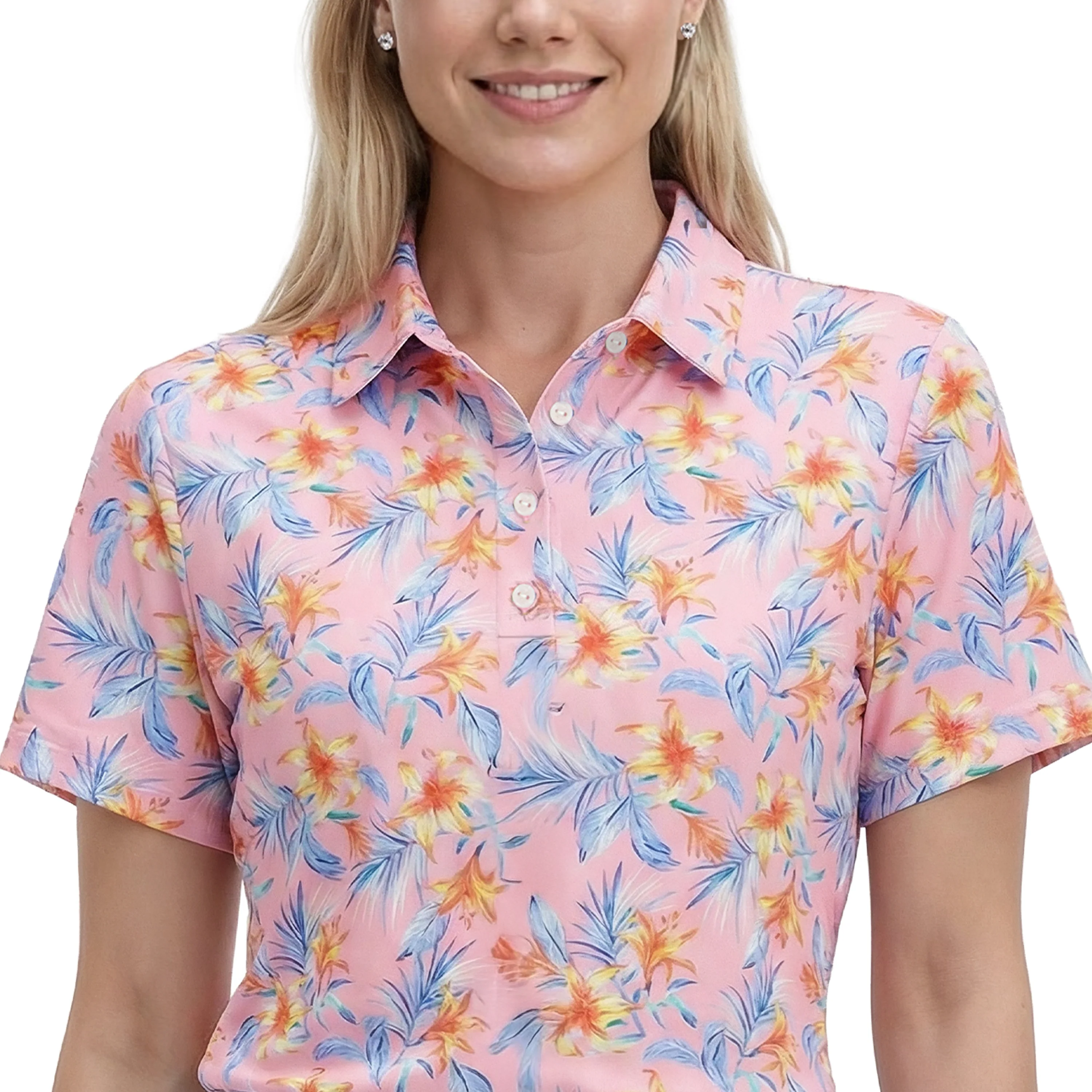 ALLY PRINTED S/S POLO - PRISM PINK