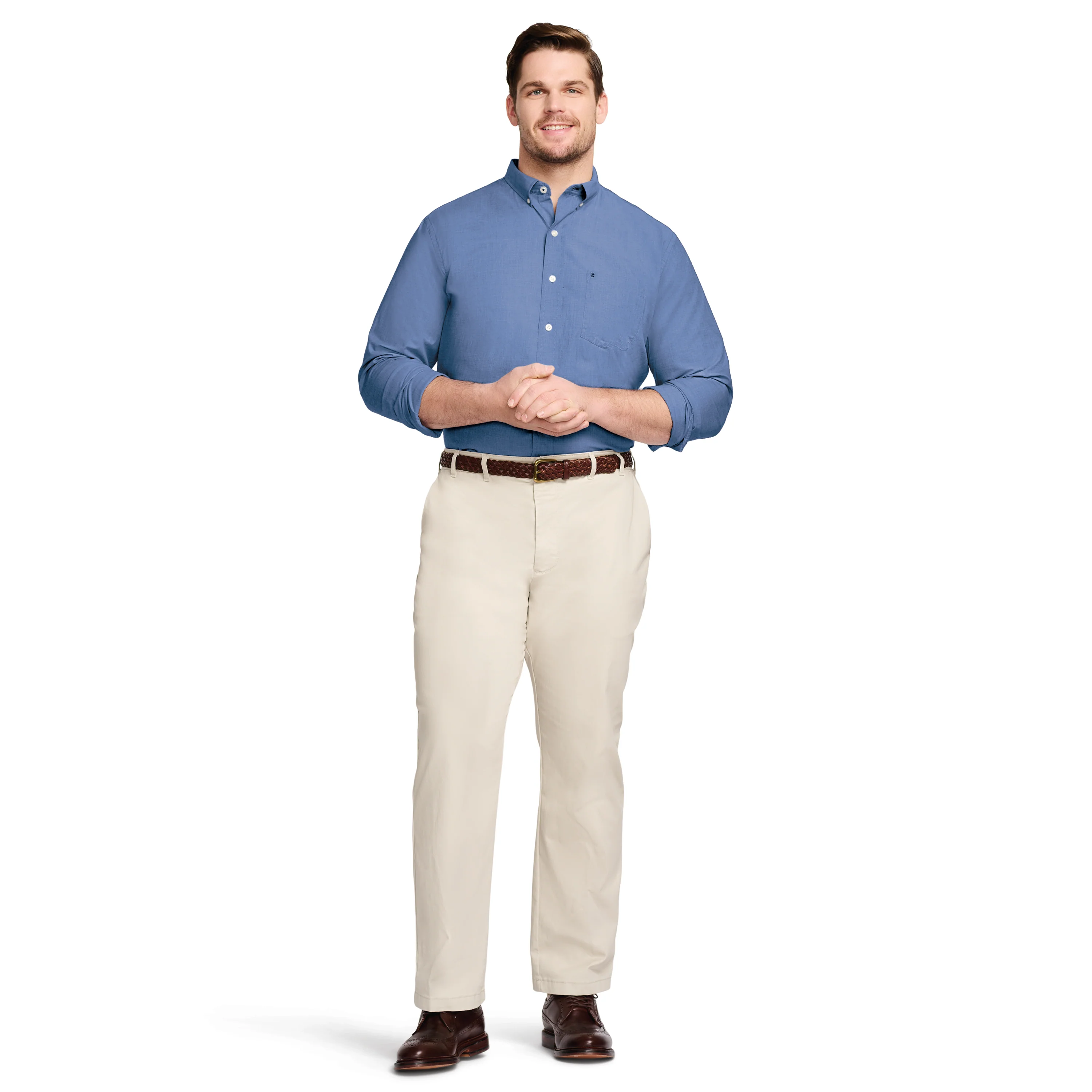 This classic fit, long sleeve, button down shirt is cut from an easy-to-wear fabric with added stretch, so it keeps its shape and moves with you throughout the day. The cotton-blend is machine washable for easy care and since itās made from recycled materials, itās also easy on our planet.