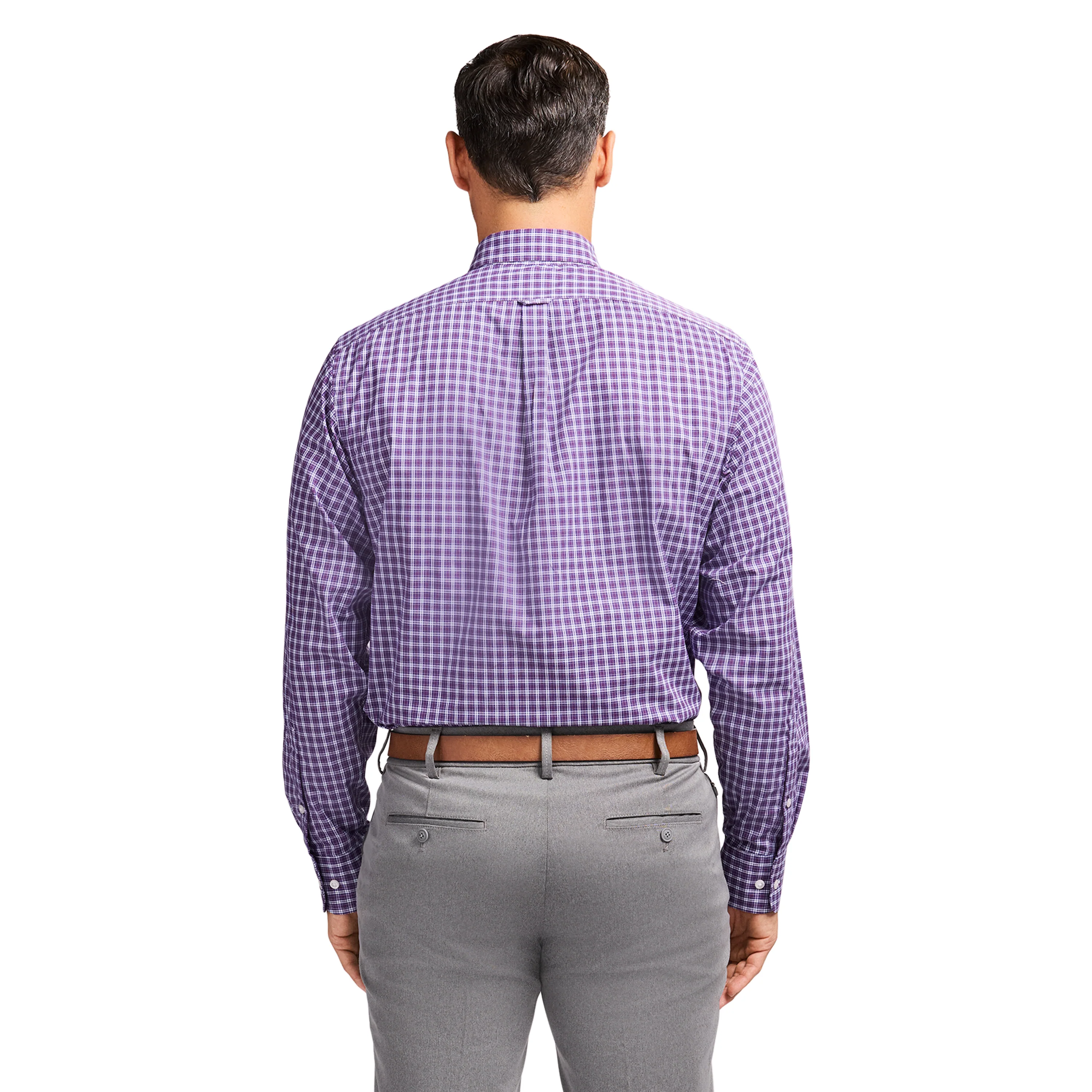 This classic fit, long sleeve, button down shirt is cut from an easy-to-wear fabric with added stretch, so it keeps its shape and moves with you throughout the day. The cotton-blend is machine washable made from recycled materials, itās also easy on our planet. Also wrinkle resistant so you can leave your iron unplugged.