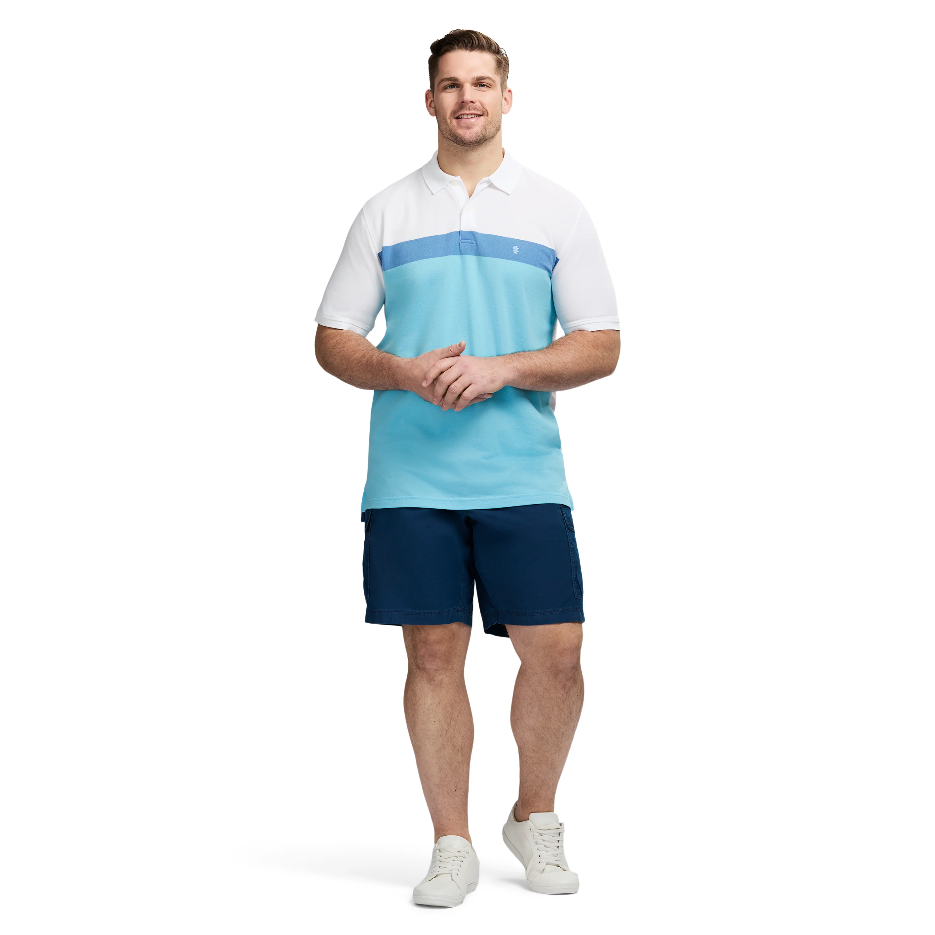 BIG & TALL ADVANTAGE PERFORMANCE STRIPED POLO - BRIGHT WHITE
